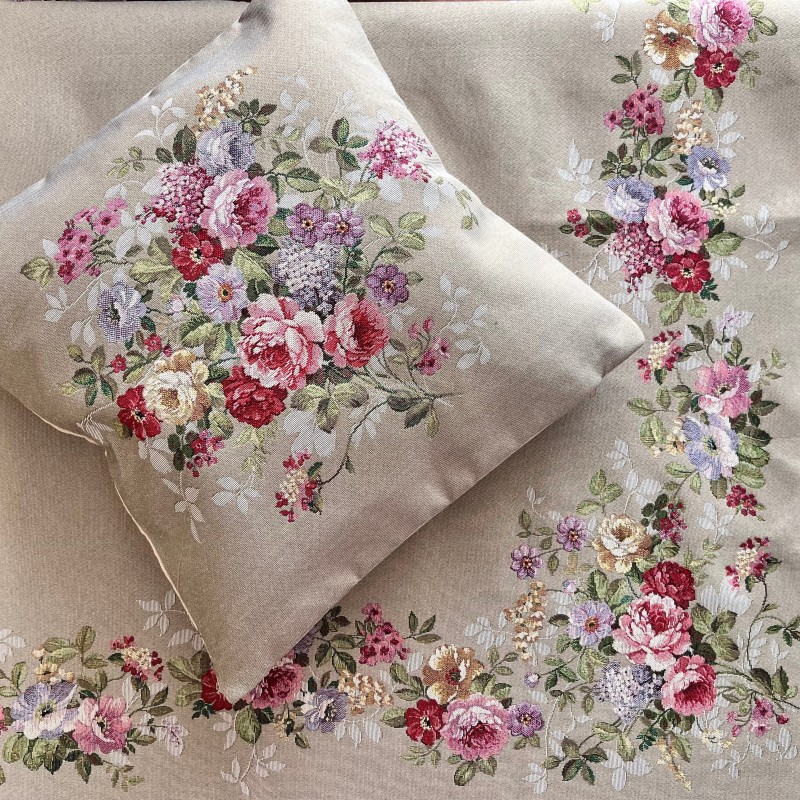 Gobelínová povlak růžový sad mokka 45x45cm