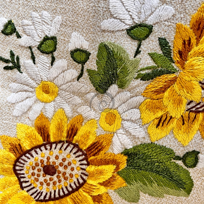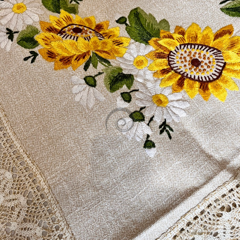 Vyšívaný obrus s krajkou - slunečnice 95x95cm