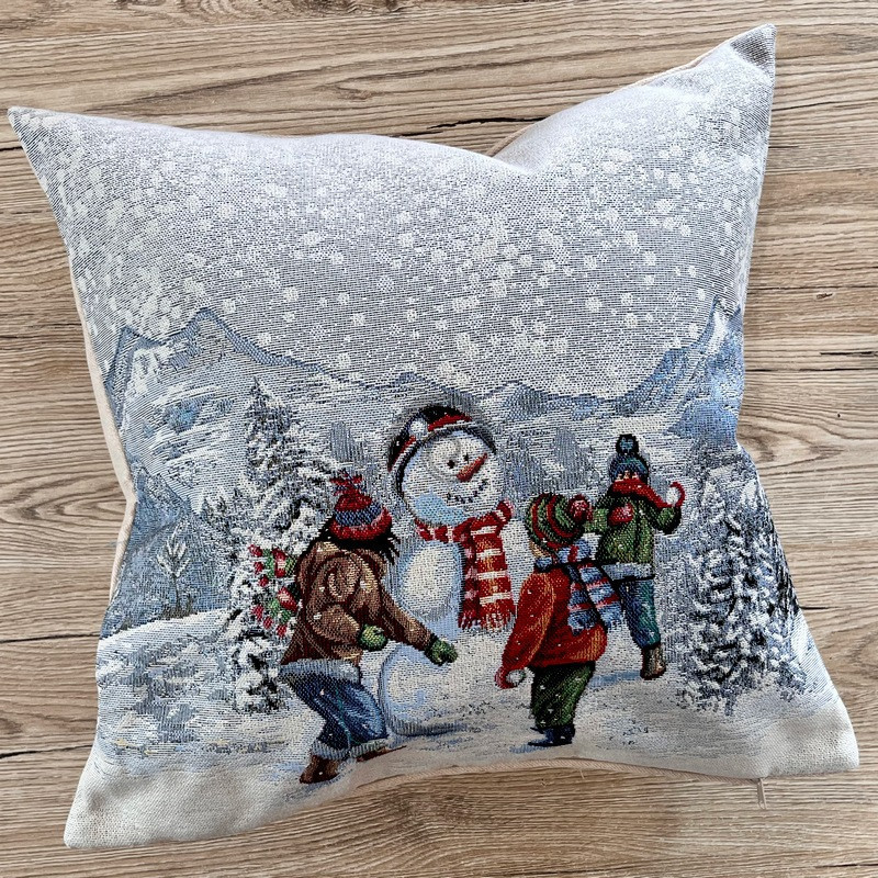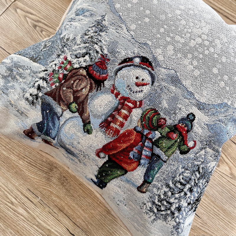 Gobelínový povlak Stavaní sněhuláka 45x45cm