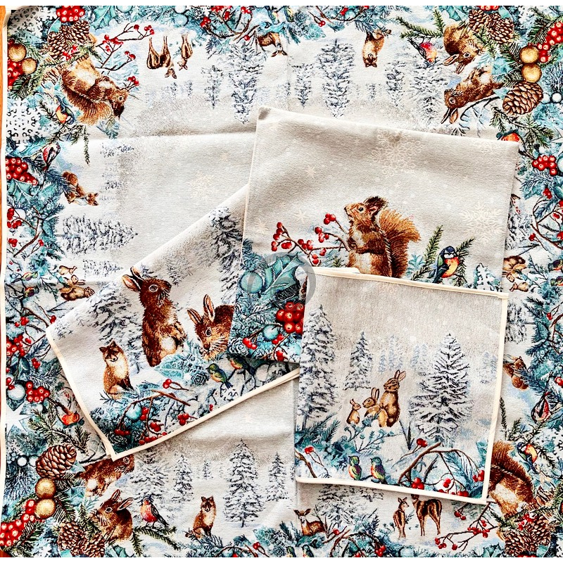 Gobelínový obrus Lesné zvieratká v zime kolo 140cm