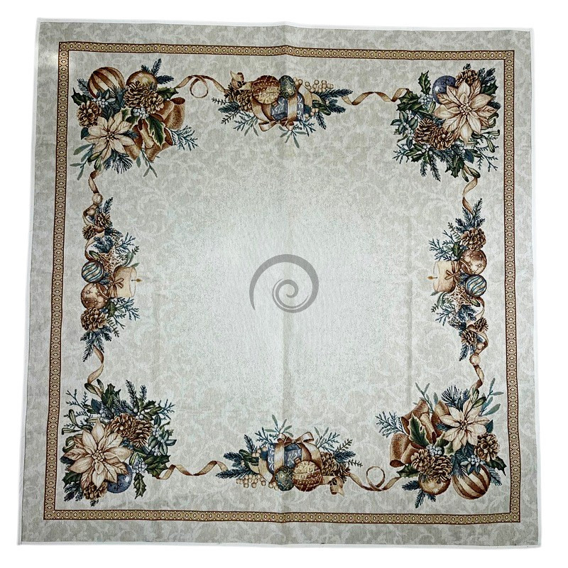 Vánoční gobelínový ubrus Vánoční ruže zlatá