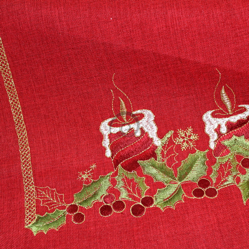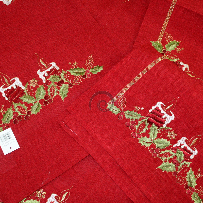 Vánočný vyšívaný ubrus červený - svíčky 5081 40x160cm