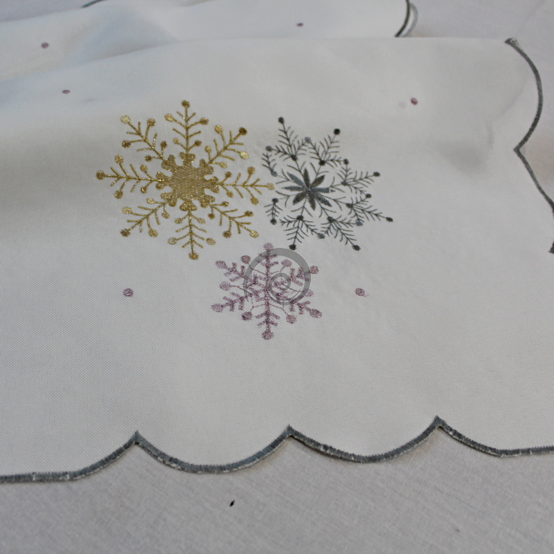 Vánočný vyšívaný ubrus bílí vločky 5105 40x160cm