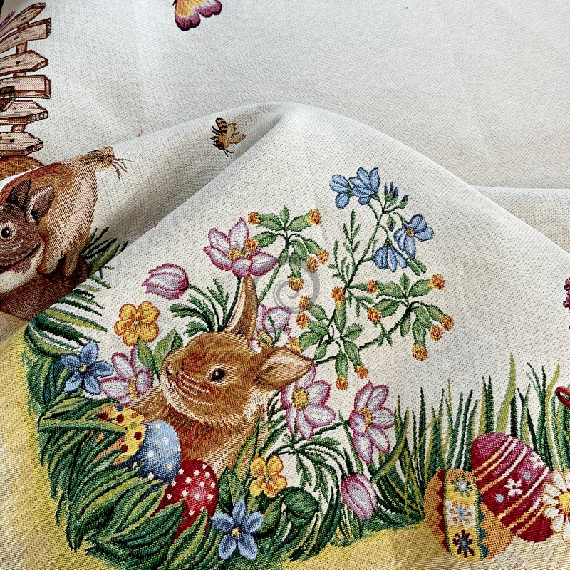 Gobelínový ubrus Zajace za plotem 100x100cm