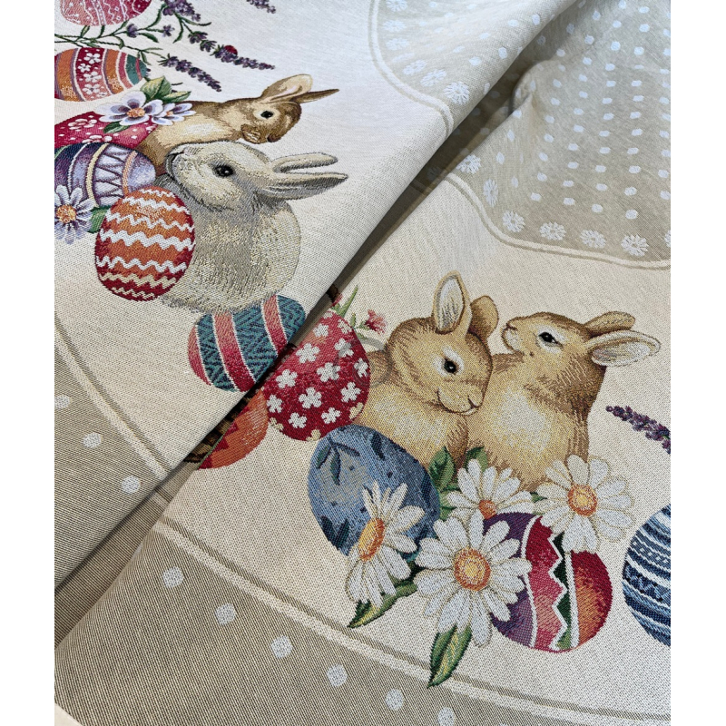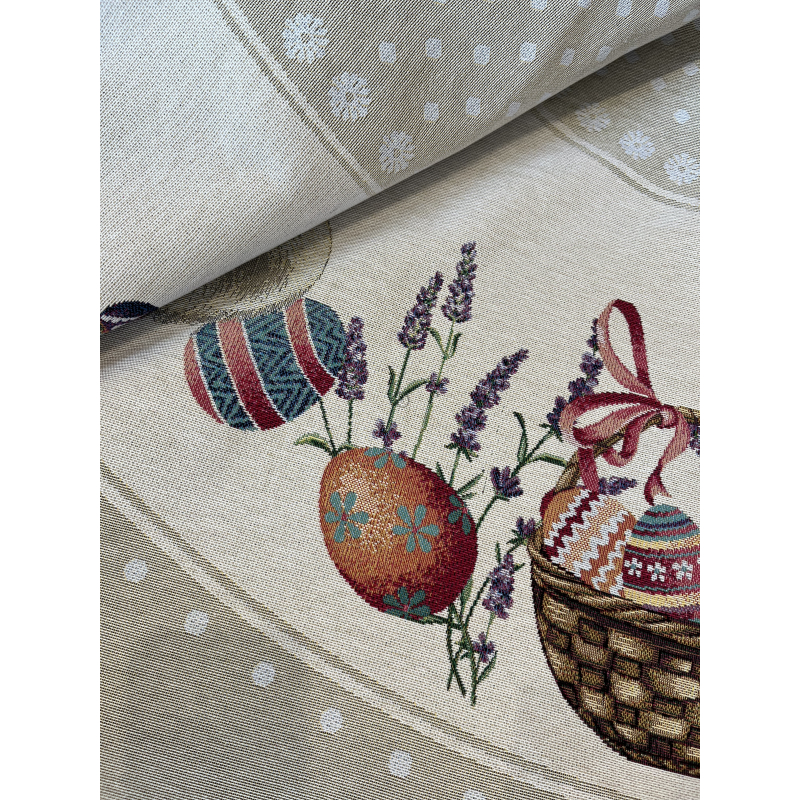 Gobelínový velikonoční ubrus Tečkované velikonoce-mokka kolo 140cm