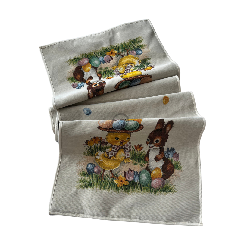 Gobelínový velikonoční ubrus Velikonoční kamarádi 45x140cm