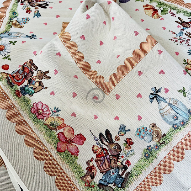 Gobelínový velikonoční ubrus Zajíčí rodinka - hnědá 100x100cm