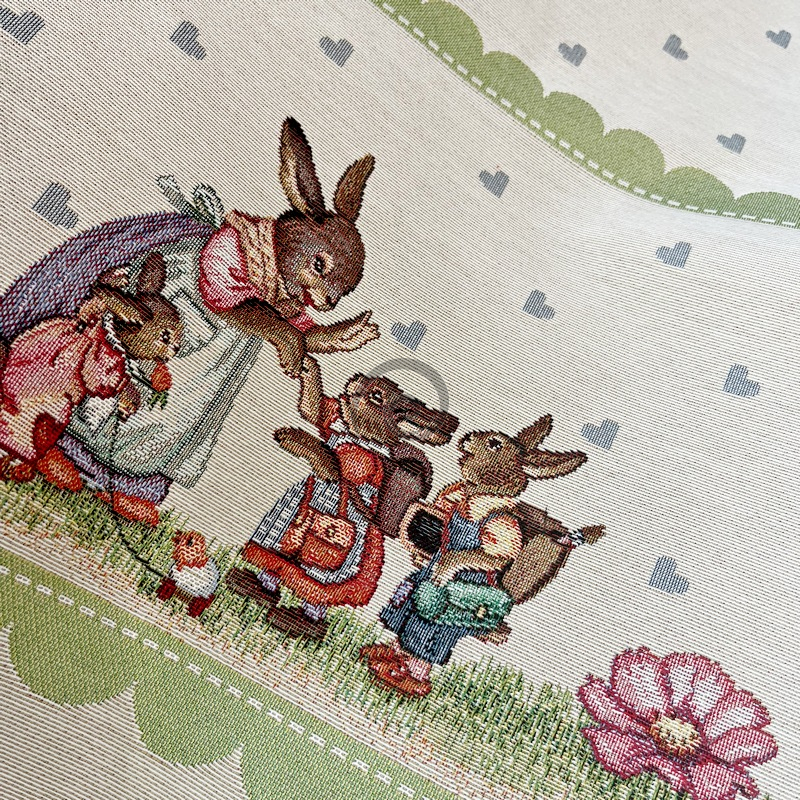 Gobelínový velikonoční ubrus Zajíčí rodinka - zelená 100x100cm