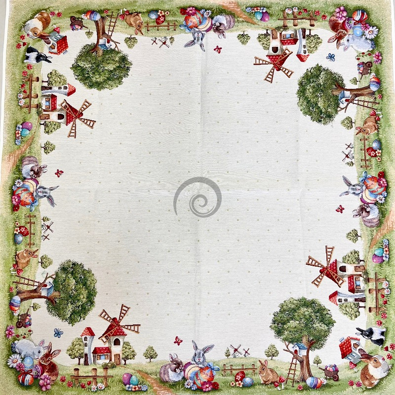 Gobelínový velikonoční ubrus zajíčky na cestě 100x100cm