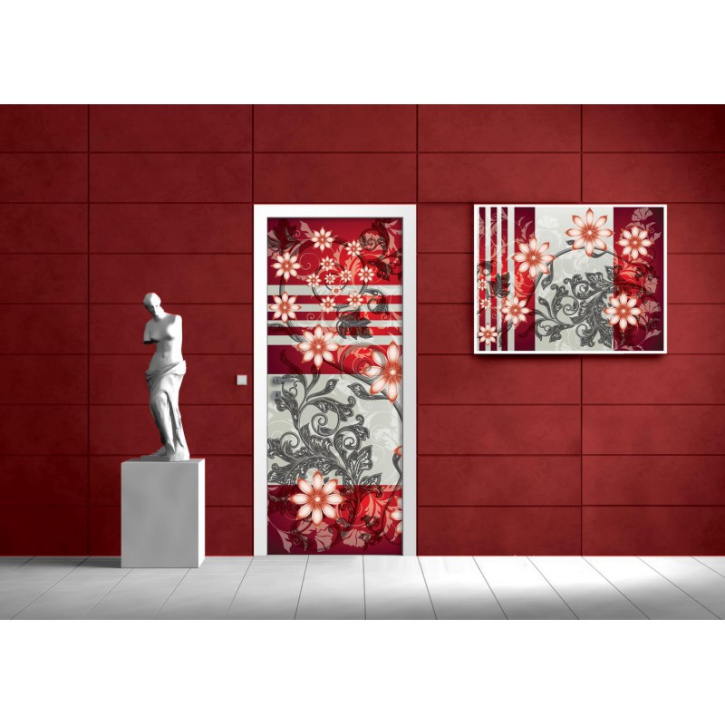 Dverová fototapeta - FT2995 - Kvetovaný motív – červený
