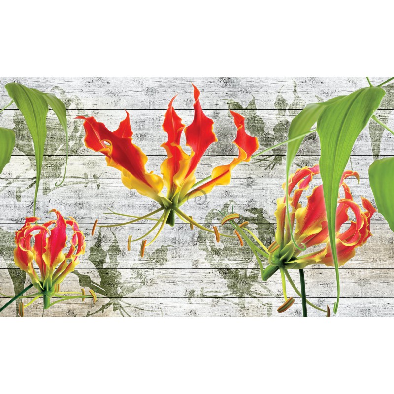 Fototapeta na stenu - FT2932 - Červené ľalie na drevenom pozadí