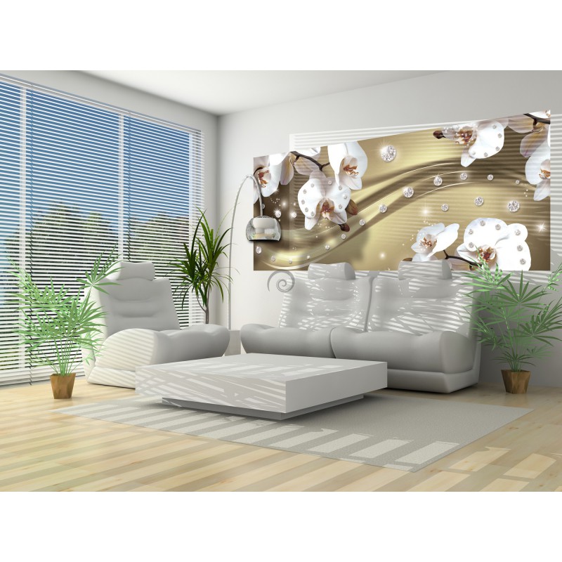 Panoramatická fototapeta - FT3109 - Biele kvety na zlatom pozadí