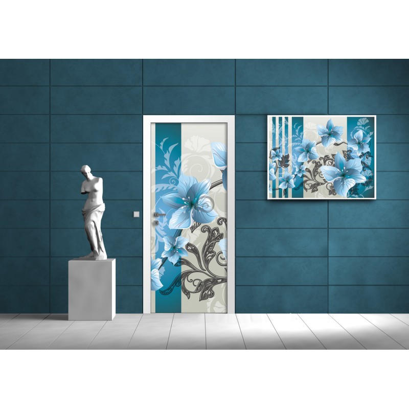 Dverová fototapeta - DV0304 - Modré kvety na modrom pozadí