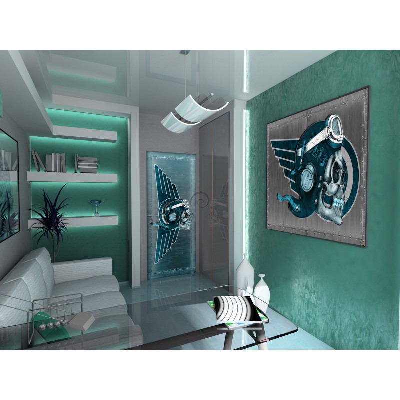 Dverová fototapeta - DV0321 - Lebka – pilot modrý