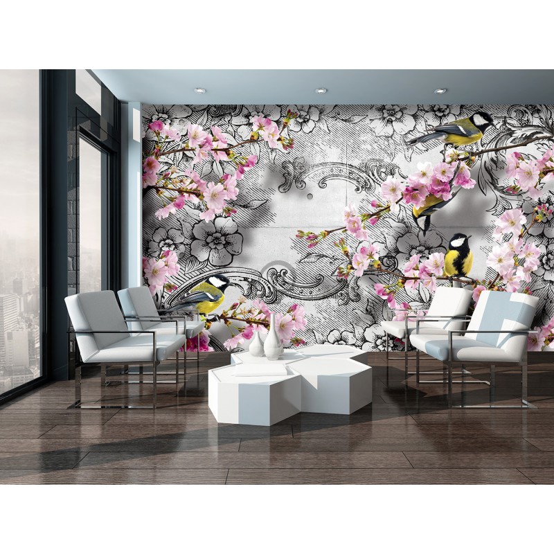Fototapeta na stenu - FT5137 - Kvety a sýkorky