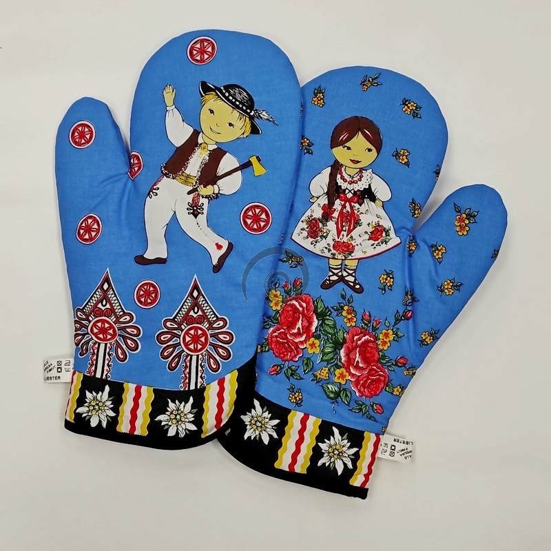 Kuchynské rukavice Folk - modrá