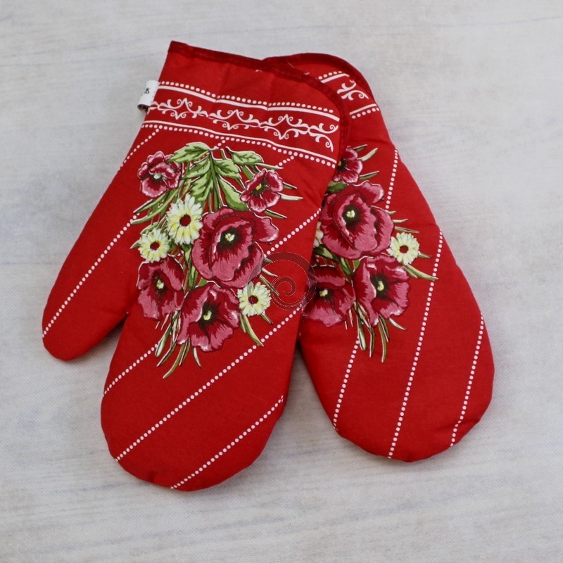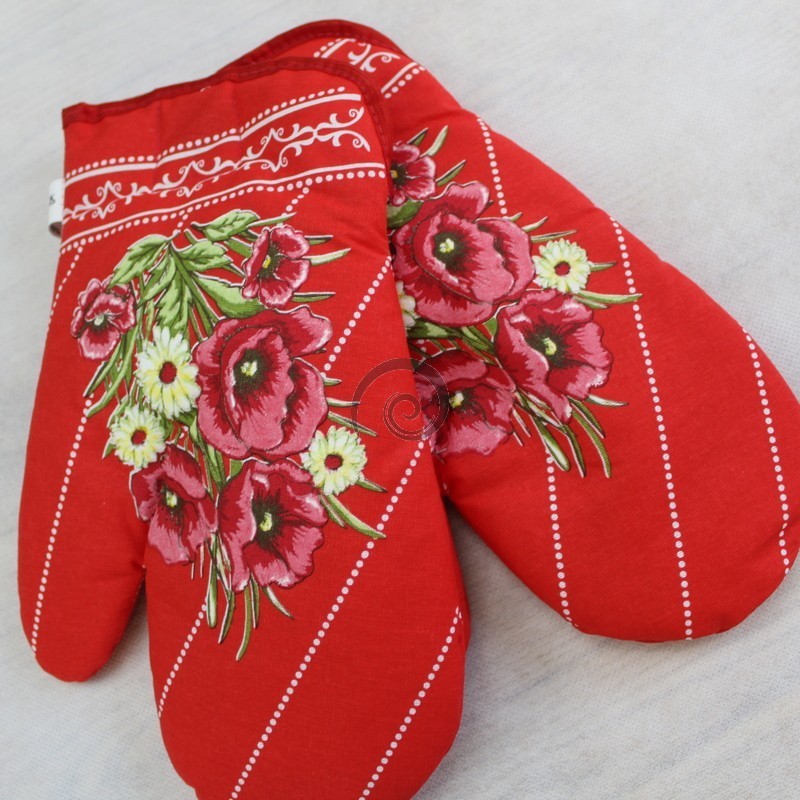 Kuchynské rukavice vlčie maky - červená