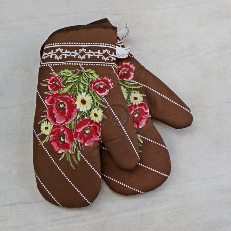 Kuchynské rukavice vlčie maky - tmavo hnedá