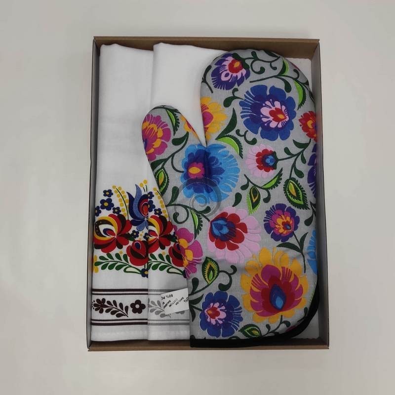 Set obsahuje - 1x rukavica-obojstranný vzor, 2x utierka