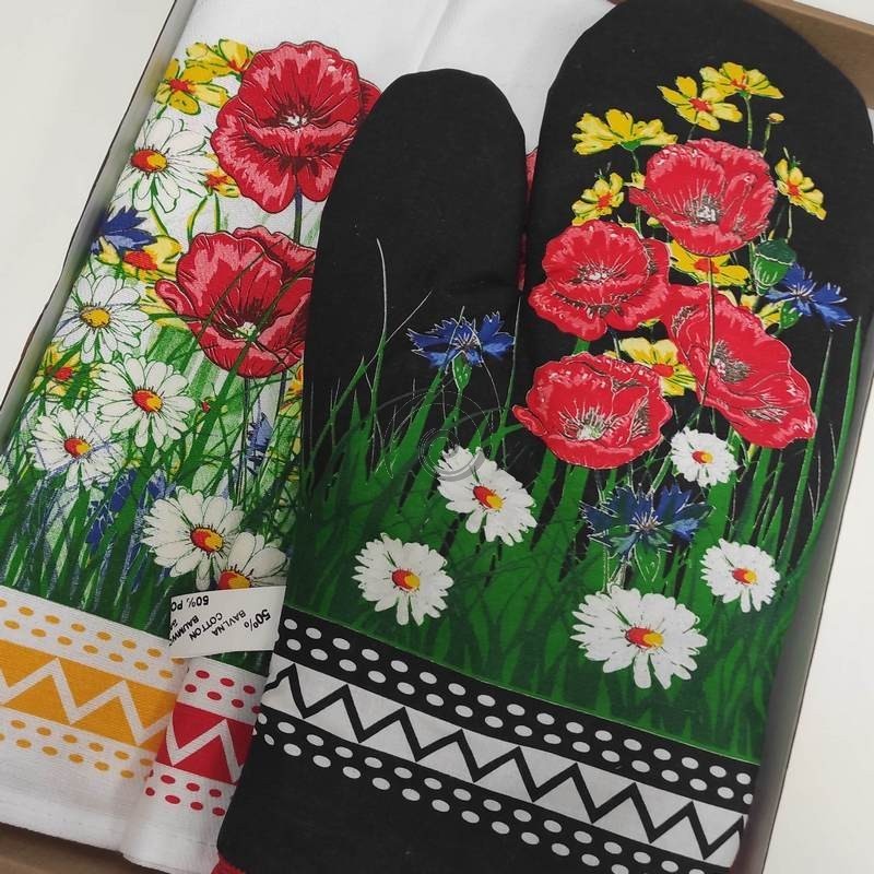 Set obsahuje - 1x rukavica-obojstranný vzor, 2x utierka