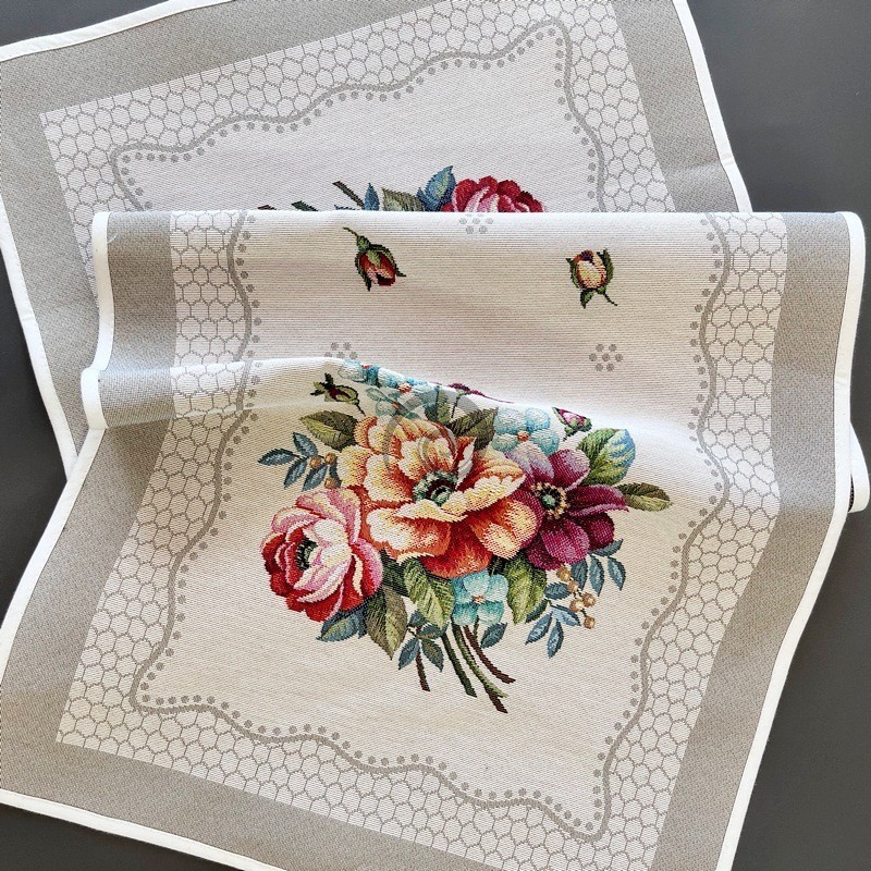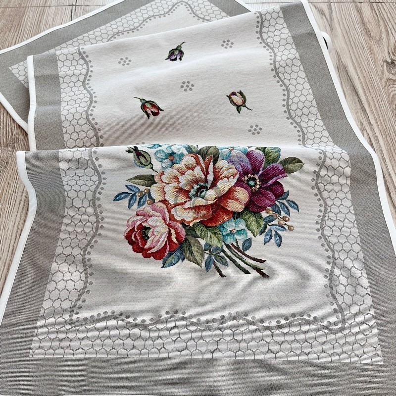 Exkluzívny strojovo tkaný obrus je luxusným doplnkom každého stola. Pevný materiál predurčuje jeho dlhú životnosť. Zloženie: 58% bavlna, 32% polyester, 10% akryl Údržba: Prať na 40C, Nebieliť chlórom, nečistiť chemicky, žehliť na 110C/opatrne pri žehlení s parou/