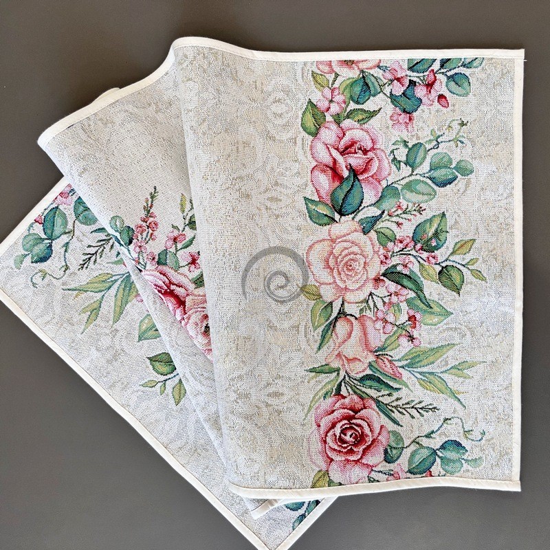 Exkluzívny strojovo tkaný obrus je luxusným doplnkom každého stola. Pevný materiál predurčuje jeho dlhú životnosť. Zloženie: 58% bavlna, 32% polyester, 10% akryl Údržba: Prať na 40C, Nebieliť chlórom, nečistiť chemicky, žehliť na 110C/opatrne pri žehlení s parou/