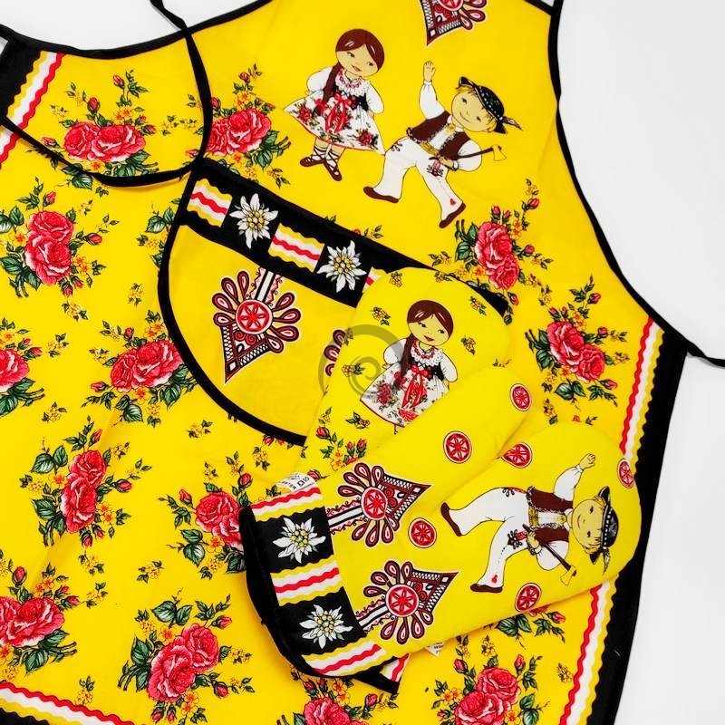 Kuchynská zástera Folk - žltá