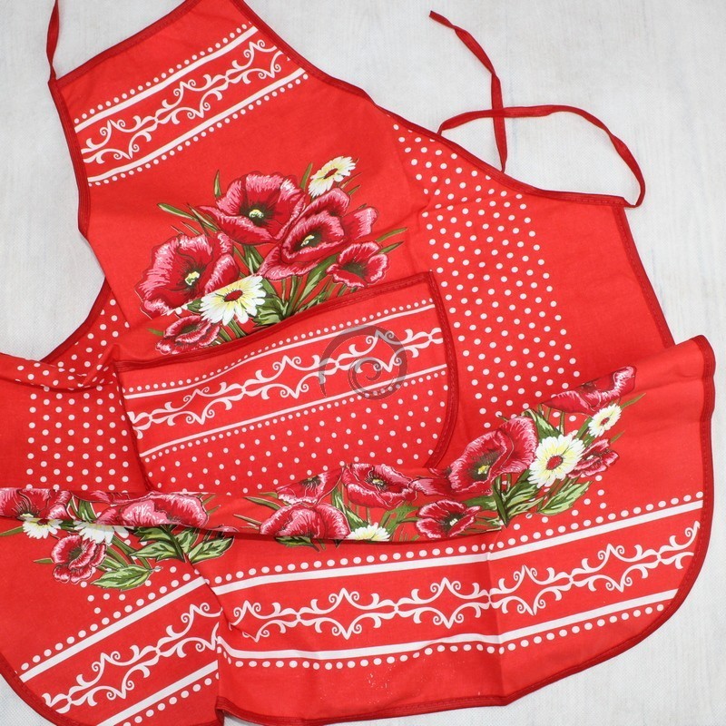 Kuchynská zástera Vlčie maky - červená