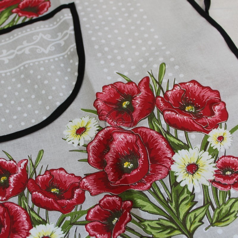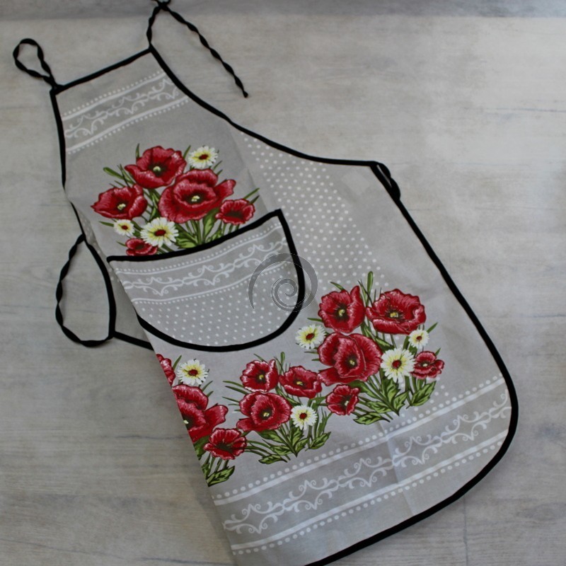 Kuchynská zástera Vlčie maky - sivá s čiernym lemom