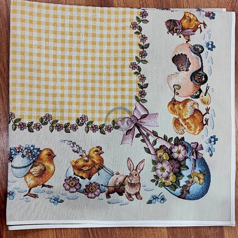 Gobelínový veľkonočný obrus Kuriatka na ceste 100x100cm