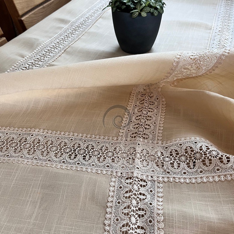 Obrus s krajkou béžový 2814 130x220cm