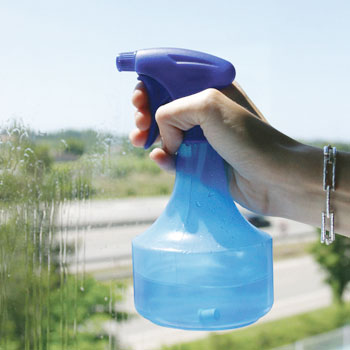 2. Nastriekajte na okno cistu vodu