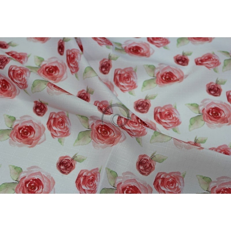 Farba: biely podklad, ružová,odtiene červenej, zelená