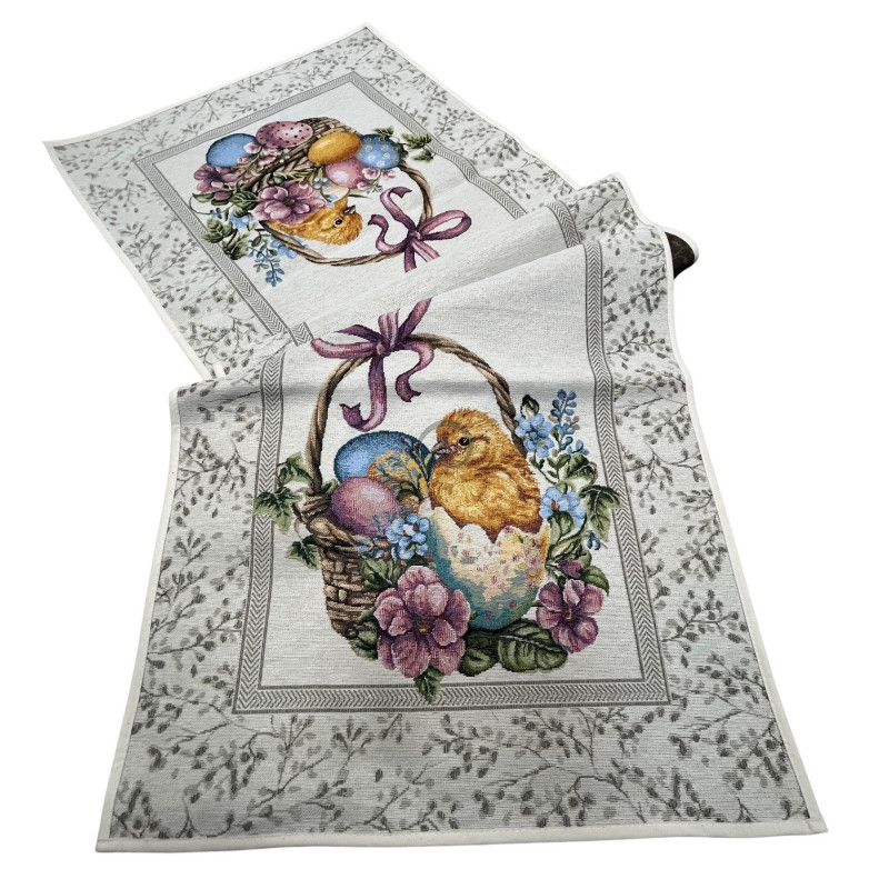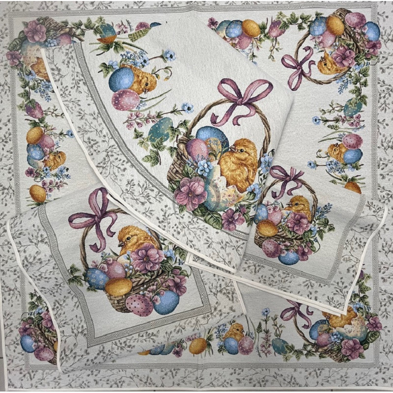 Gobelínový obrus veľkonočný - Kuriatka v košíku rôzne rozmery