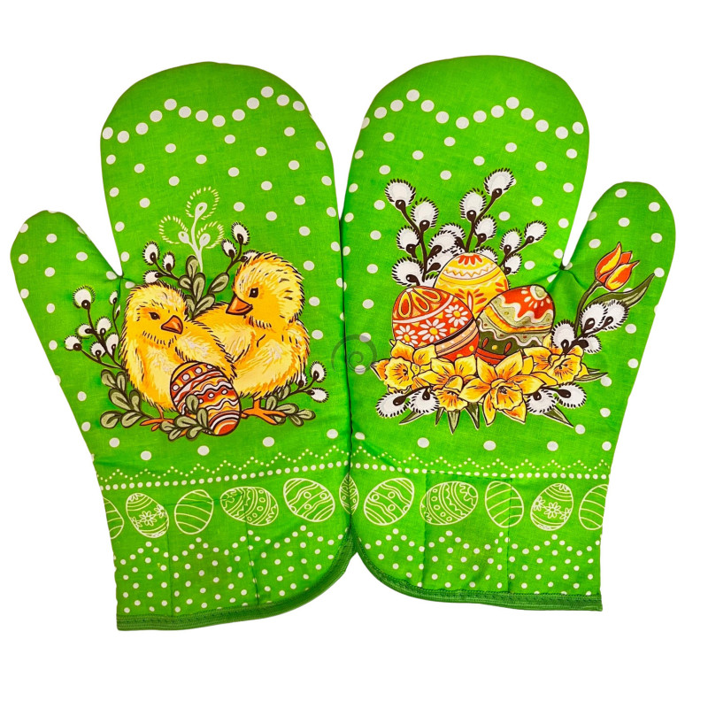 Kuchynské rukavice s magnetom veľkonočné kuriatko/pár - zelená