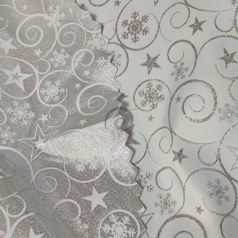Gramáž: /m²Teflonové obojstranné obrusy s vyššou gramážou Vám zaručia dokonalé Vianočné stolovanie.Obrus je z jednej strany biely so zlatým alebo strieborným vzorom a druhá strana obrusu je zlatá,príp.strieborná s bielym vzorom.
