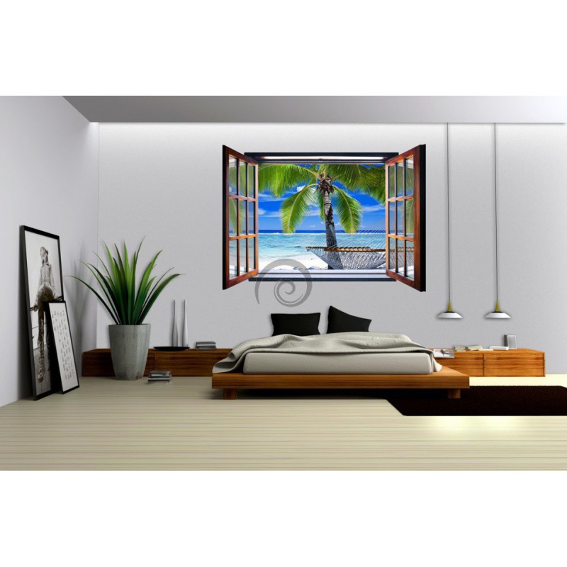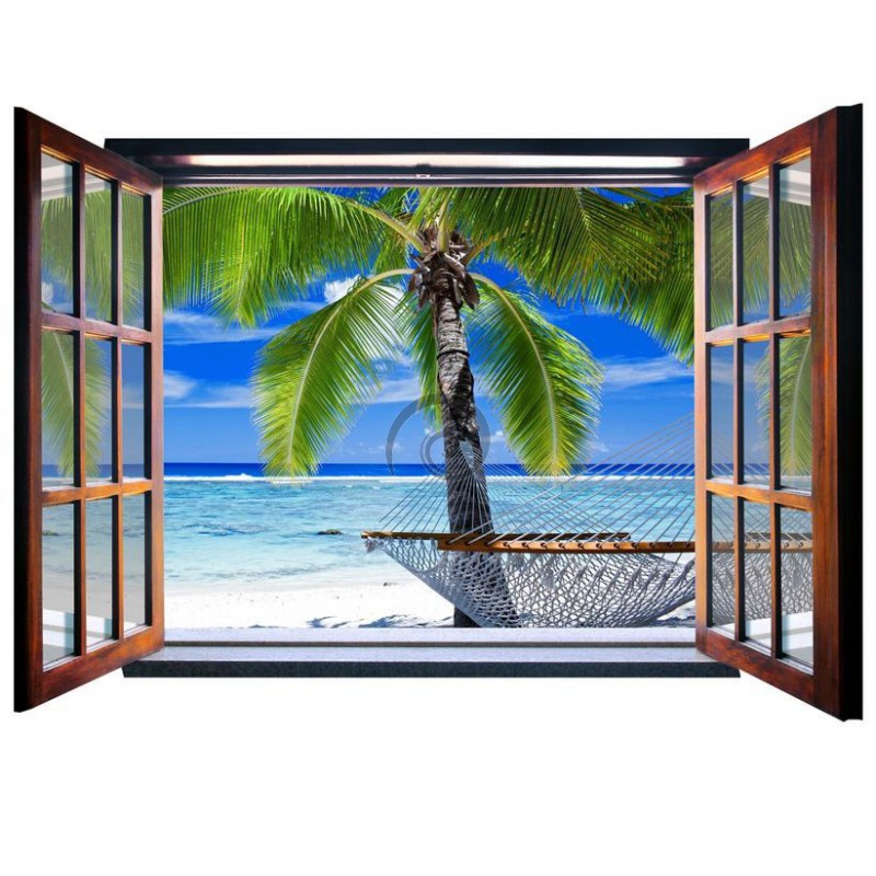 Fototapeta - FT0084 - Okno - hojdacia sieť medzi palmami
