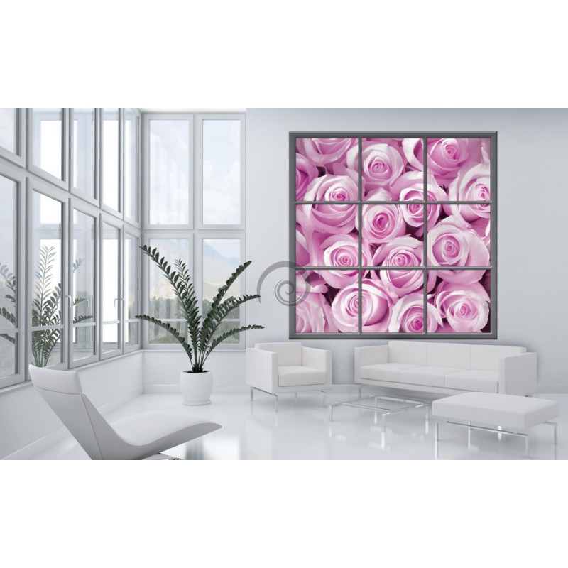 Fototapeta - FT0274 - Štvorcové okno - ružové ruže