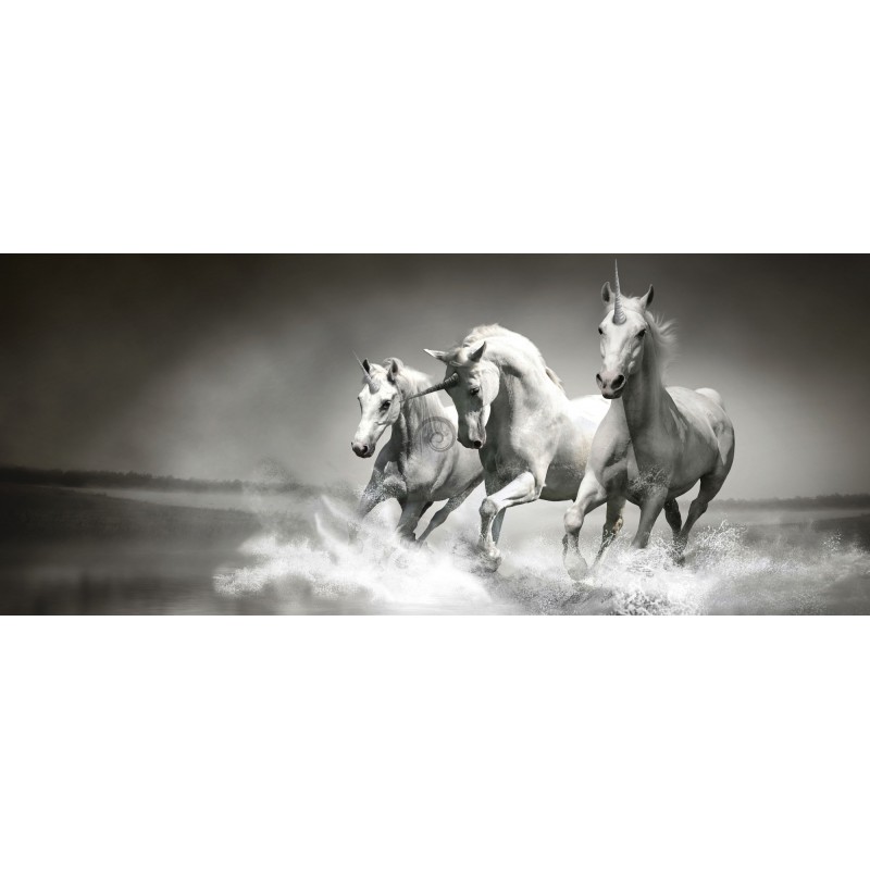 Panoramatická fototapeta - PA0125 - Jednorožce čiernobiele