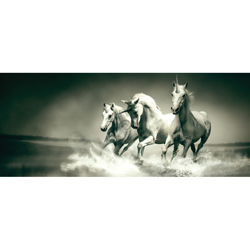 Panoramatická fototapeta - PA0127 - Jednorožce čiernobiele